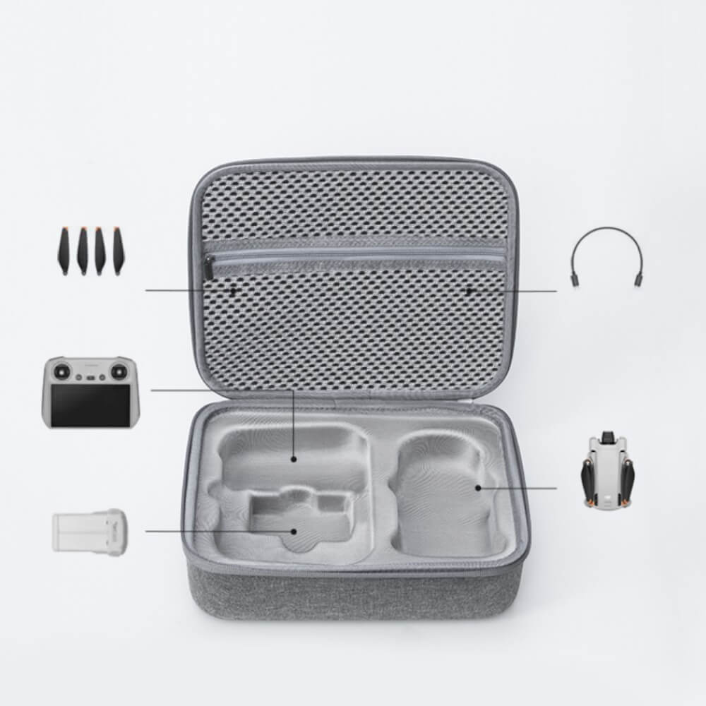 It can store 1 aircraft body, 1 DJI RC controller, 2 batteries and other drone accessories.