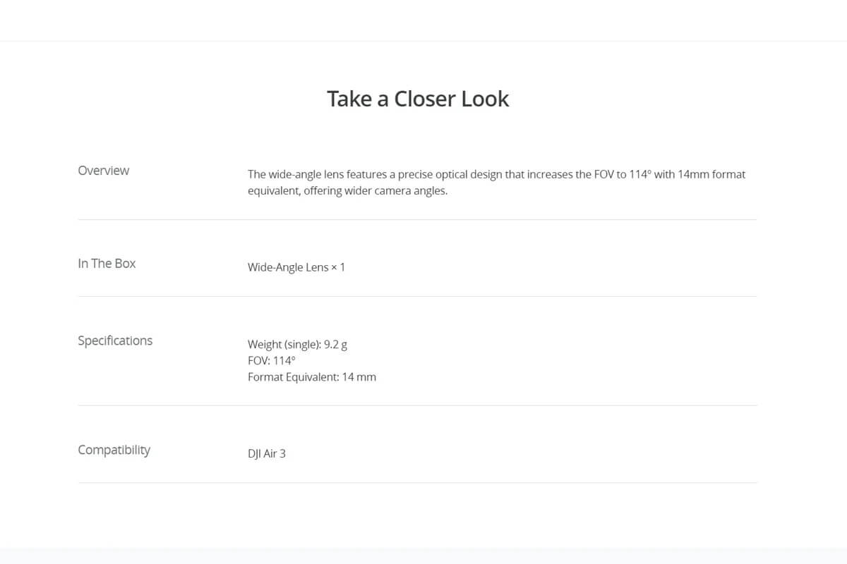 Original Wide-Angle Lens Replacement for DJI Air 3